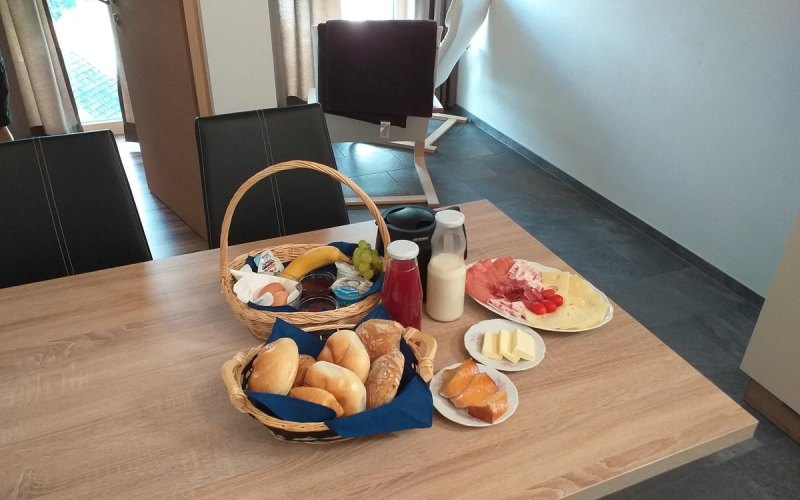 Gerne bereiten wir für Sie einen Frühstückskorb mit vielen hofeigenen bzw. selbstgemachten Produkten von unserem Hof oder aus unserer Region zu. Im Korb befinden sich je nach Saison und Jahreszeit: