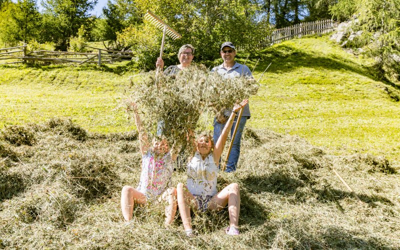 Dare da mangiare e curare gli animali. Mungere le mucche. Raccogliere il fieno profumato. Raccogliere e trasformare le verdure e le erbe aromatiche dei propri orti. Le erbe includono erba cipollina, prezzemolo, maggiorana, basilico, menta piperita e molto altro ancora. Questo è probabilmente il modo in cui si immagina il lavoro quotidiano in una fattoria. Ma com'è veramente, una vita quotidiana in montagna? Venite a trovarci al maso Naglerhof sul lago di Resia e scopritelo! Siamo contenti di ogni mano in più che ci aiuta e siamo felici di permettere a voi e ai vostri cari di partecipare alla nostra giornata di lavoro.